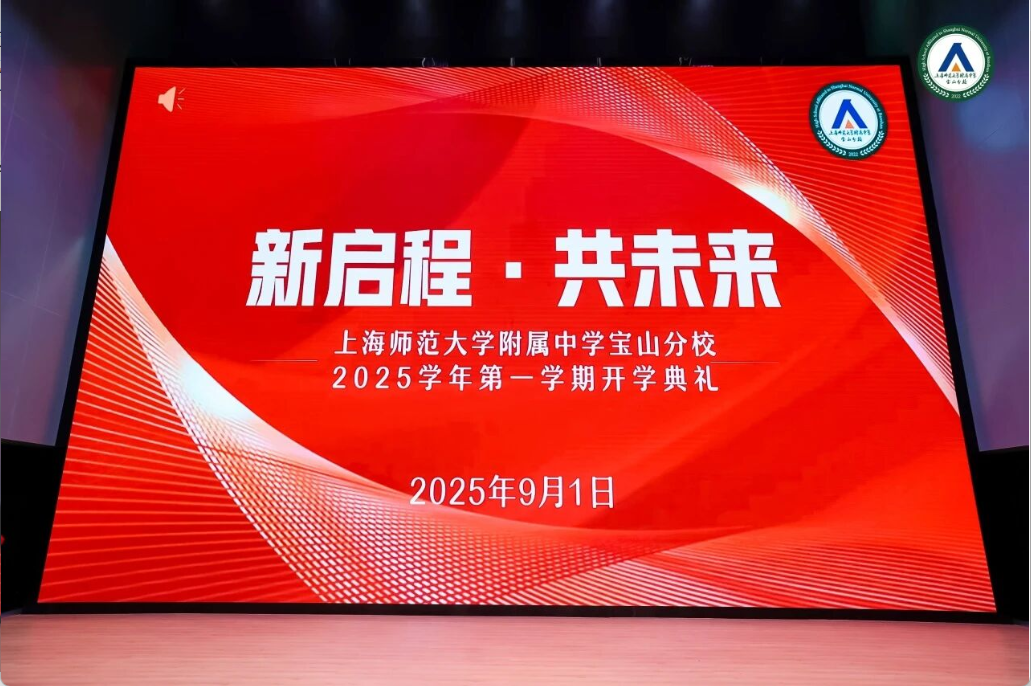 9月1日上午,上海师范大学附属中学宝山分校(以下简称上师宝分)新校区启用仪式及开学典礼顺利举行,上海师范大学党委书记林在勇,宝山区委副书记、区长邓小冬,副区长丁力,上海师范大学党委常委、组织部长、学校办公室主任史佳华,上海师范大学基础教育处处长郭长江以及上海师范大学基础教育集团科学副校长、艺术副校长等出席活动。