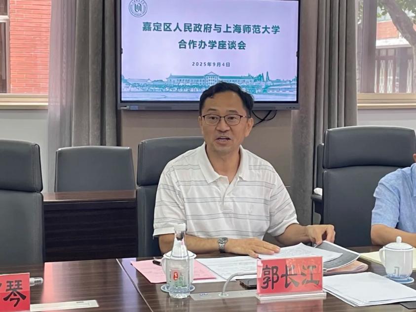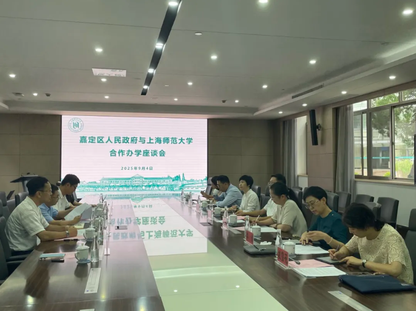 为推进“高起点规划、高标准建设、高质量发展”基础教育高质量供给,完善“大学—政府—学校”协同育人机制,形成一体衔接、分层协同、资源共享的办学格局,2025年9月4日下午,我校与嘉定区人民政府开展合作办学座谈会。嘉定区副区长王超,区教育局局长管文洁,区府办副主任沈雅玲,区教育局副局长李娟等;上海师范大学党委常委、副校长李晔,基础教育处处长郭长江,基础教育处挂职副处长冯朝君等出席会议。会议由郭长江主持。