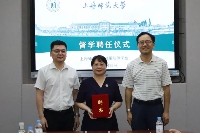 为将合作落到实处,助力附属学校实现高质量发展,会议举行了隆重的科学副校长及督学聘任仪式。上海师范大学化学与材料科学学院贾能勤教授将担任附属秋萍学校科学副校长,他及其团队将为附属秋萍学校的科学教育发展注入强劲的专家资源和前沿理念。同时,上海师范大学退役军人学院副院长、研究员刘兰英教授受聘为学校督学,凭借其丰富的教育研究与管理经验,为学校的教育教学质量提升提供专业指导。