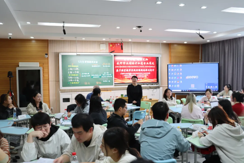 分组研讨与互动交流环节,与会老师们对两节课进行了充分激烈的研讨和互动分享。每个小组分别交流了观课体会和分析观点,提炼出两节课的创新点。杨老师的课例充分展现了技术与教学的深度融合,实现“动态演示—实时反馈—分层支持”闭环,为小学生空间观念培养提供新范式。王老师的课例以分类思想贯通算理,强化符号意识与逻辑思维,破解小初割裂难题,在小初学段衔接促进学生数学思维发展方面提供了教学新视角。同时大家还就如何进一步优化教学提出了建设性的意见与建议。