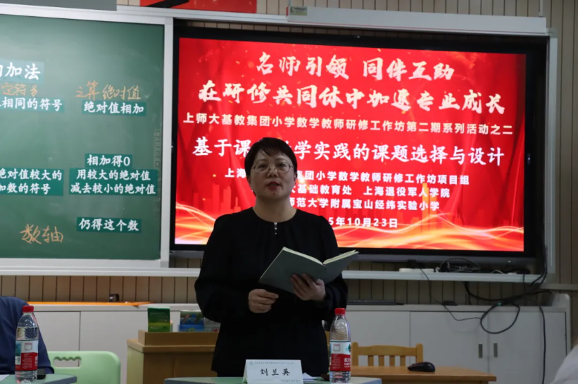 为深化基础教育课堂教学改革,提升教师教科研能力,第二期上海师范大学基础教育集团小学数学教师研修工作坊首次教研活动于2025年10月23日在上海师范大学附属宝山经纬实验小学成功举办。项目主持人、上海退役军人学院副院长刘兰英研究员,上海市特级教师潘小明,上海师范大学附属宝山经纬实验小学校长郭丽芳校长、副校长唐春华等专家、领导出席,研修工作坊全体学员、上海师范大学附属宝山经纬实验小学数学教师、上海市双名工程攻关计划团队成员等60余人参与活动。