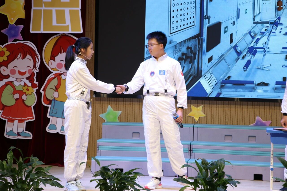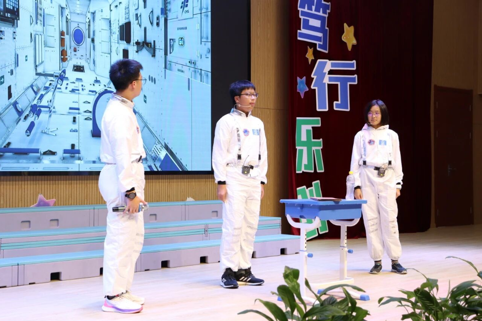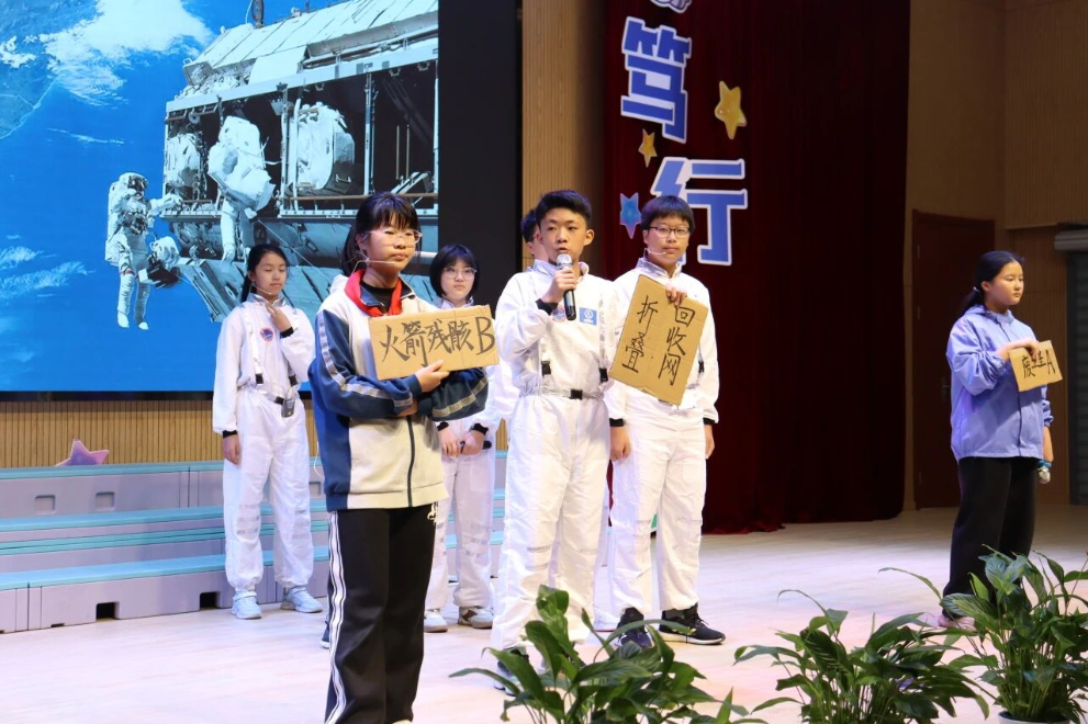 开幕式上,一场由8名初中生表演的科学剧《太空清理队》引发了深深思考。同学们化身守护地球轨道的“太空卫士”,生动演绎了废弃卫星、火箭碎片等“太空垃圾”对航天器的巨大威胁。他们用创意道具模拟出“抓捕”、“清理”和“回收利用”太空垃圾的过程,将“太空环境需要共同守护”的环保理念传递给了每一位观众。这场表演不仅普及了宇宙知识,更在同学们心中种下了可持续发展的种子。
