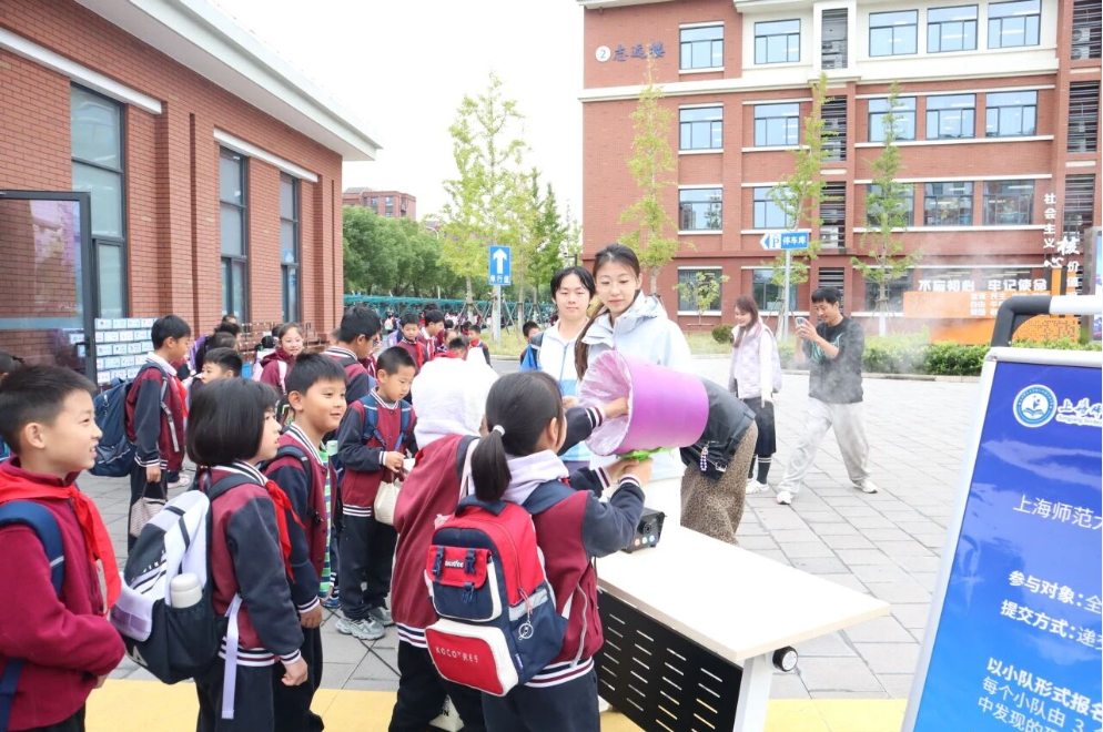 此外,上海师范大学松江科创实验学校还将清晨的校门变成了一个露天科学实验室!